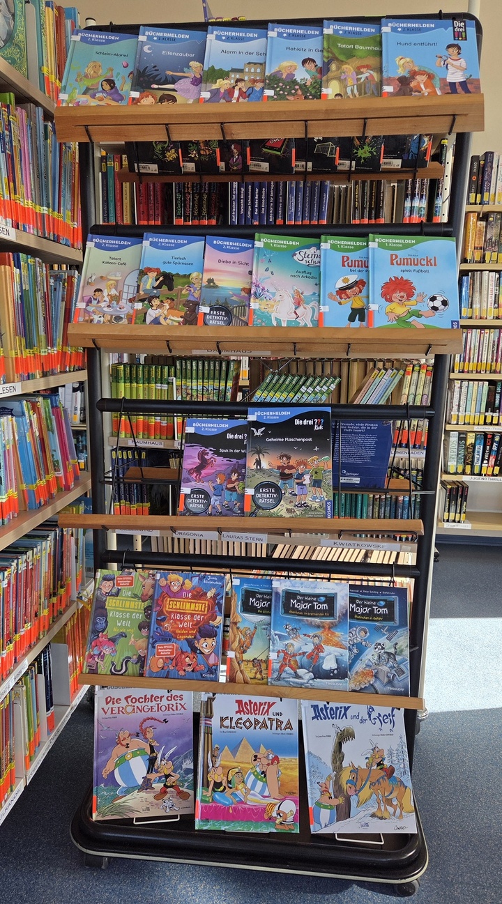 Hier erwartet Sie ein umfangreiches Medienangebot: Ob unterhaltsame Romane, ausgewählte Kinder- und Jugendbücher, Biografien, Sachbücher und vieles mehr - bei uns findet Jede und Jeder etwas Passendes. Entdecken Sie bei uns die Vielfalt an Büchern und Medien, die wir für Sie bereit gestellt haben. Das Büchereiteam steht Ihnen dabei gerne beratend zur Seite und ist für Sie da. Wir geben unsere Begeisterung für Bücher gerne an Sie weiter!